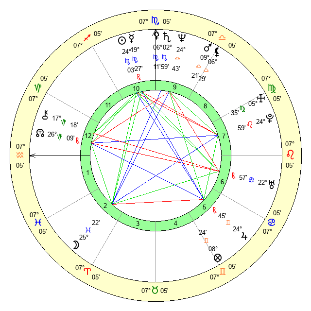 | Sun | 24 Scorpio 3 | 24 Scorpio 35 | 7 Aquarius 14 |