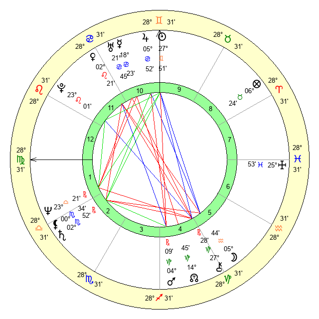 | Sun | 27 Gemini 51 | 28 Gemini 40 | 5 Virgo 48 |