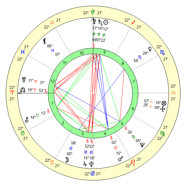 | Venus | 29 Scorpio 55 | 0 Pisces 36 | 8 Pisces 9 |