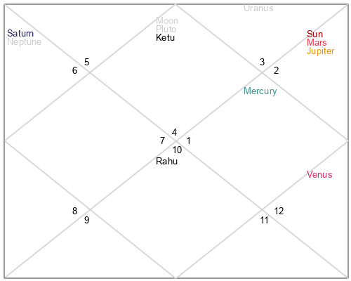 | Rahu | 6 Aquarius 43 | 24 Pisces 9 | 2 Aquarius 55 |