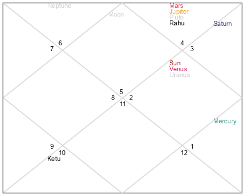 | Rahu | 0 Leo 15 | 23 Pisces 37 | 25 Cancer 58 |
