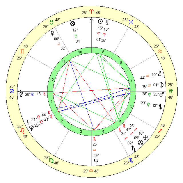 | Sun | 15 Aries 1 | 15 Aries 18 | 21 Gemini 47 |