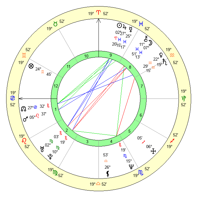 | Moon | 7 Pisces 17 | 17 Capricorn 33 | 24 Gemini 14 |