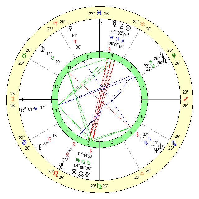 | Jupiter | 25 Capricorn 26 | 11 Gemini 43 | 5 Aquarius 36 |