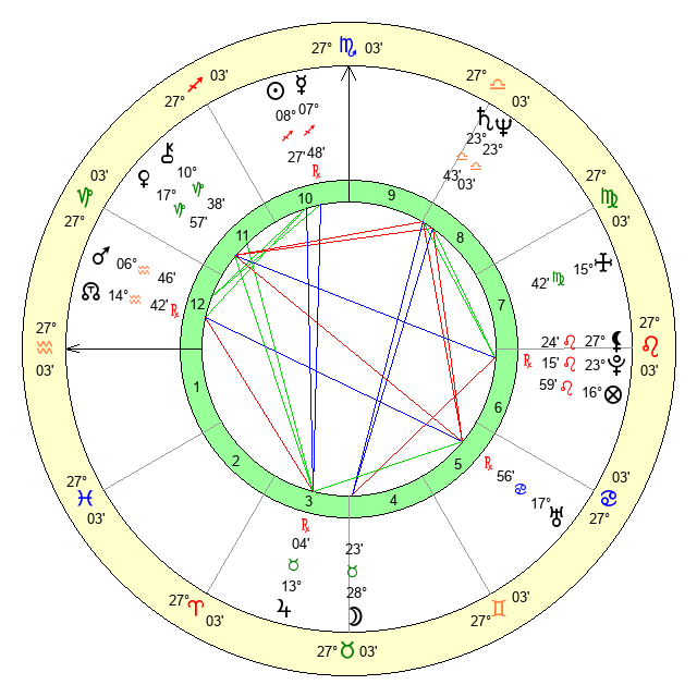 | Venus | 17 Capricorn 58 | 29 Scorpio 50 | 9 Aries 6 |