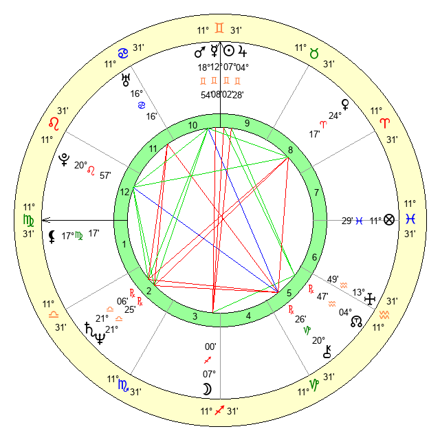 | Mercury | 12 Gemini 9 | 5 Gemini 48 | 28 Cancer 18 |