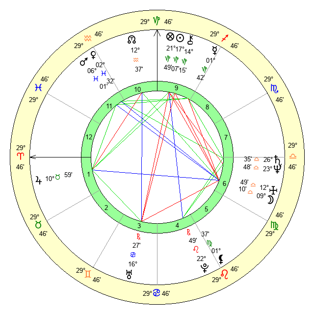 | Moon | 9 Libra 2 | 13 Virgo 17 | 23 Gemini 27 |