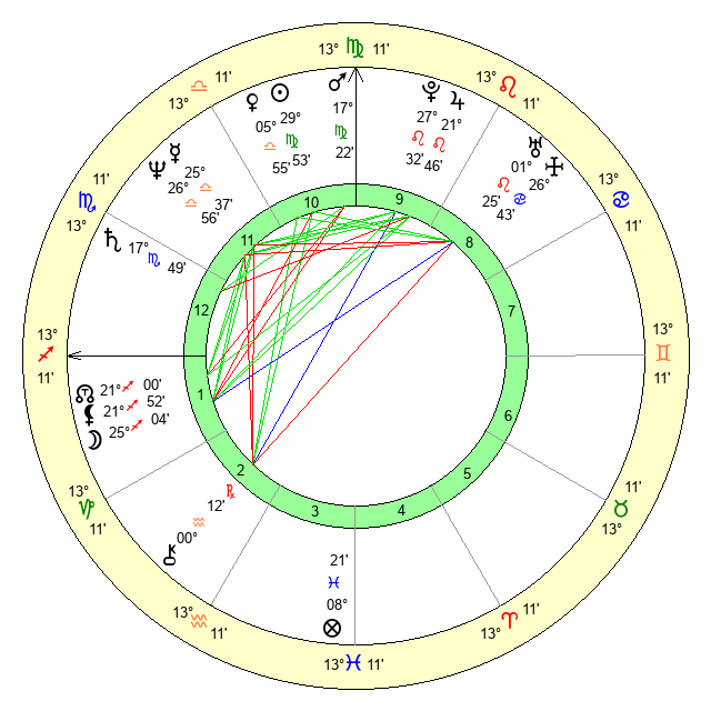 | Mars | 17 Virgo 22 | 0 Scorpio 56 | 2 Scorpio 22 |
