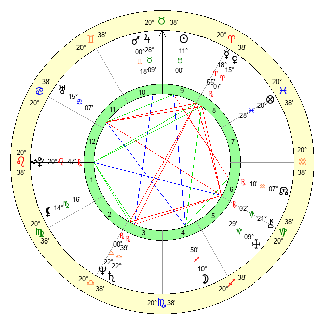 | Mars | 0 Gemini 19 | 5 Leo 55 | 18 Cancer 53 |