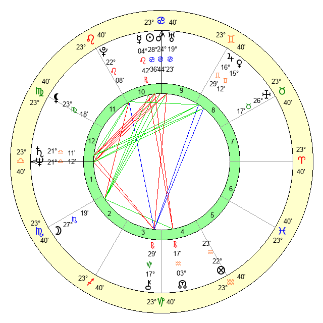 | Moon | 27 Scorpio 14 | 18 Gemini 17 | 29 Cancer 4 |