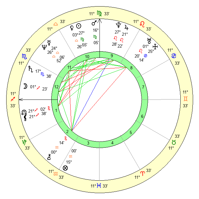 | Mars | 16 Virgo 6 | 29 Libra 35 | 1 Scorpio 4 |