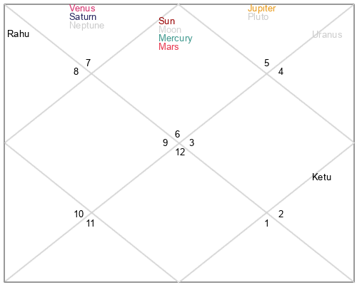 | Ketu | 20 Gemini 17 | 16 Virgo 21 | 16 Gemini 34 |