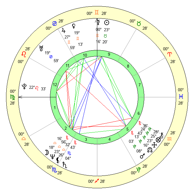 | Venus | 19 Gemini 13 | 9 Aries 36 | 12 Virgo 57 |