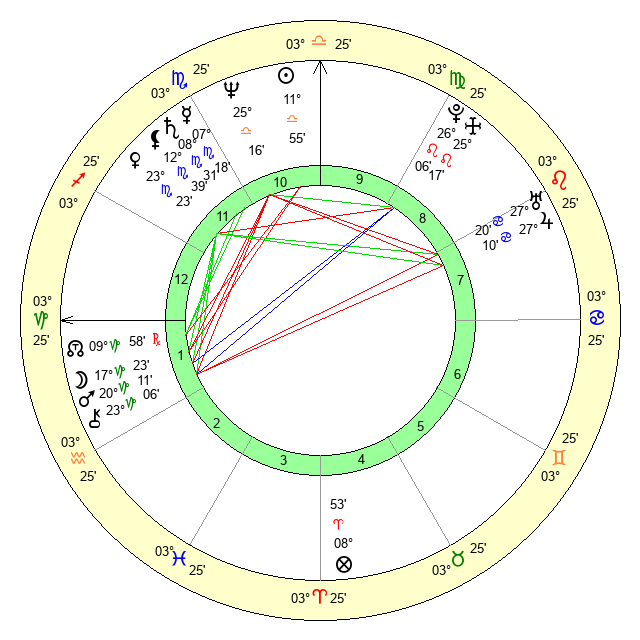 | Venus | 23 Scorpio 22 | 19 Virgo 52 | 16 Scorpio 29 |