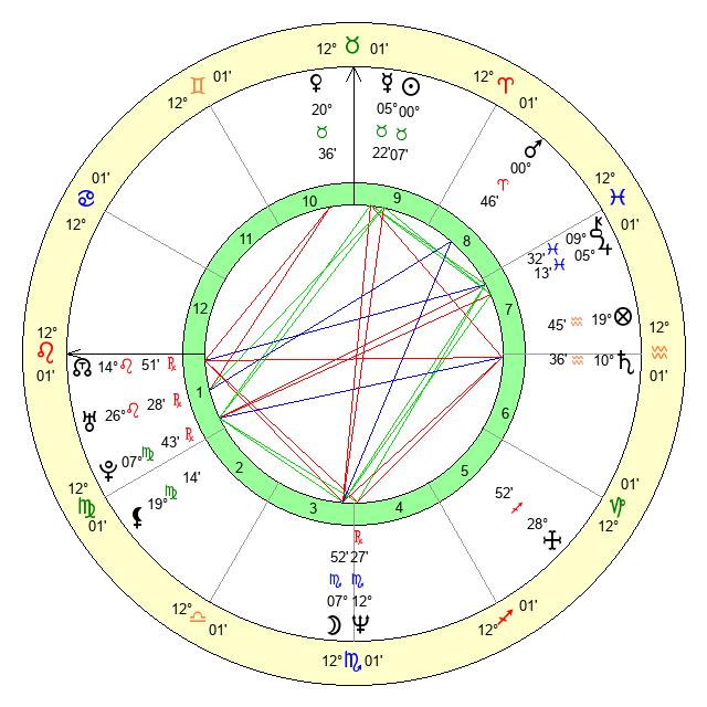 | Venus | 20 Taurus 37 | 25 Pisces 45 | 6 Leo 28 |