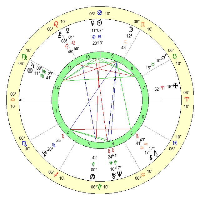 | Neptune | 17 Capricorn 51 | 2 Aries 9 | 16 Capricorn 59 |