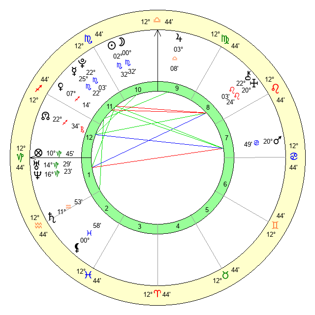 | Sun | 2 Scorpio 32 | 2 Scorpio 32 | 5 Sagittarius 42 |