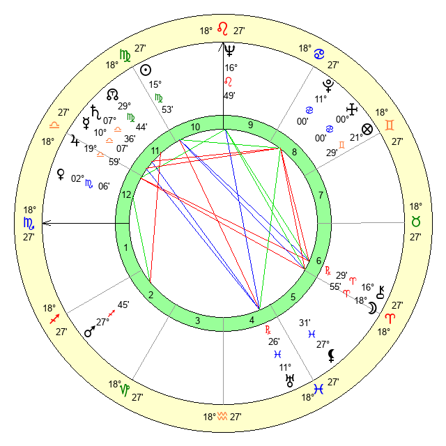 | Venus | 2 Scorpio 6 | 17 Leo 39 | 25 Scorpio 7 |