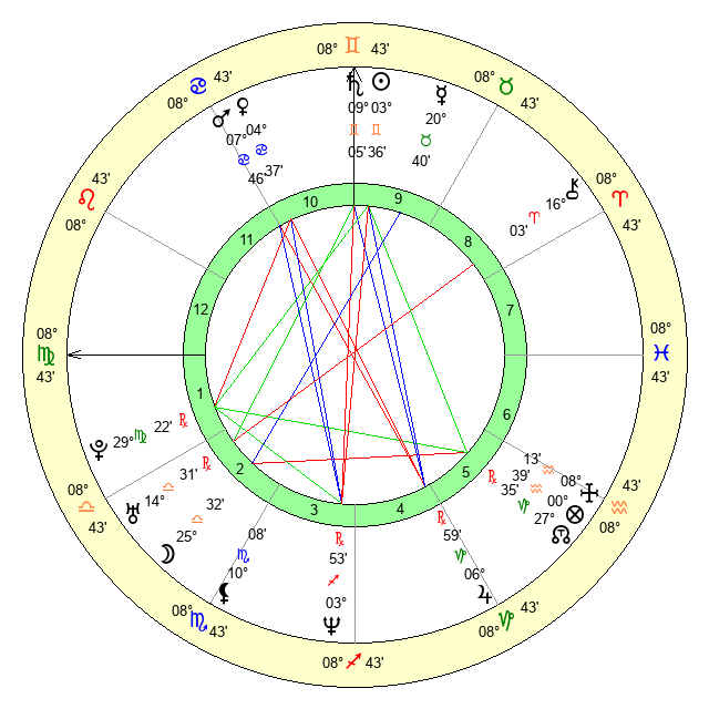 | Saturn | 9 Gemini 21 | 29 Pisces 52 | 15 Gemini 57 |