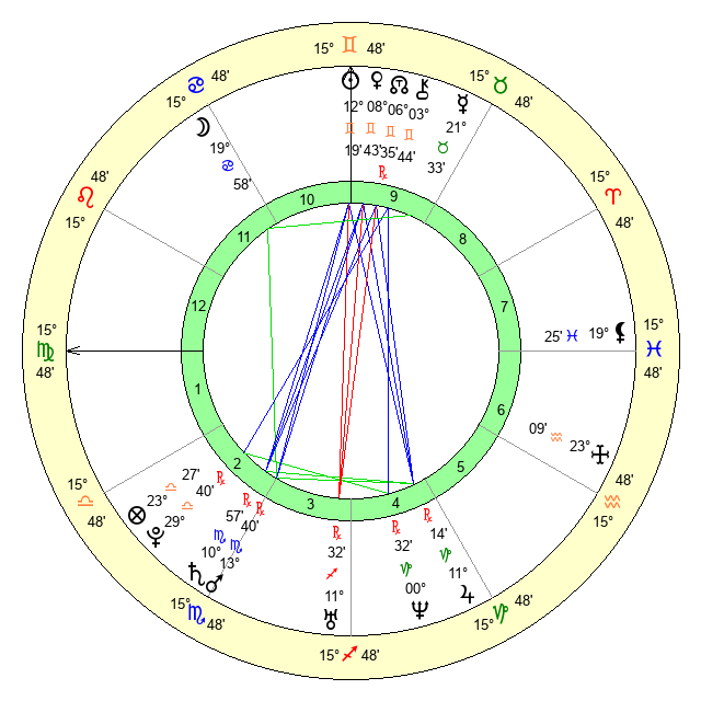 | Saturn | 11 Scorpio 19 | 0 Aries 29 | 10 Scorpio 3 |