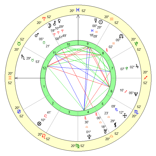 | Sun | 29 Aquarius 8 | 0 Pisces 17 | 21 Aries 53 |