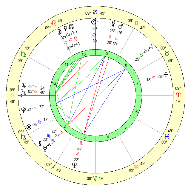 | Neptune | 22 Sagittarius 59 | 2 Aries 10 | 22 Sagittarius 10 |