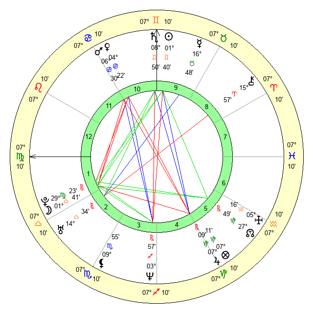 | Moon | 1 Libra 41 | 0 Aries 20 | 11 Virgo 17 |