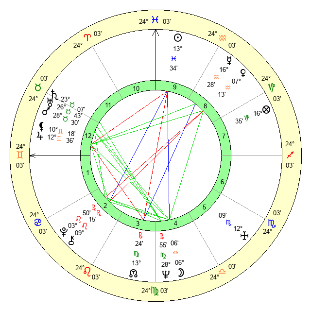 Mercury | 16 Aquarius 29 | 2 Aries 0 | 24 Gemini 43 |