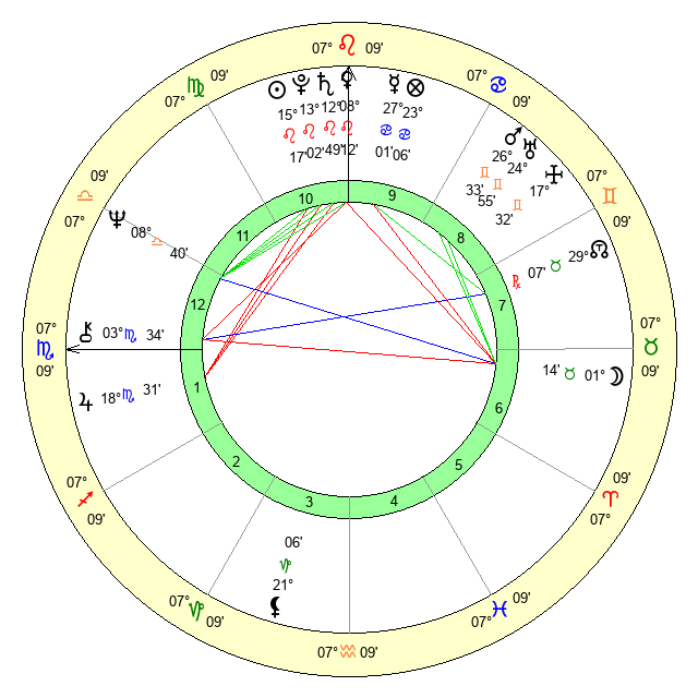 | Venus | 8 Leo 13 | 9 Cancer 56 | 15 Scorpio 9 |