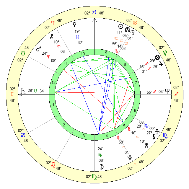 | Saturn | 29 Taurus 51 | 17 Pisces 26 | 2 Gemini 27 |