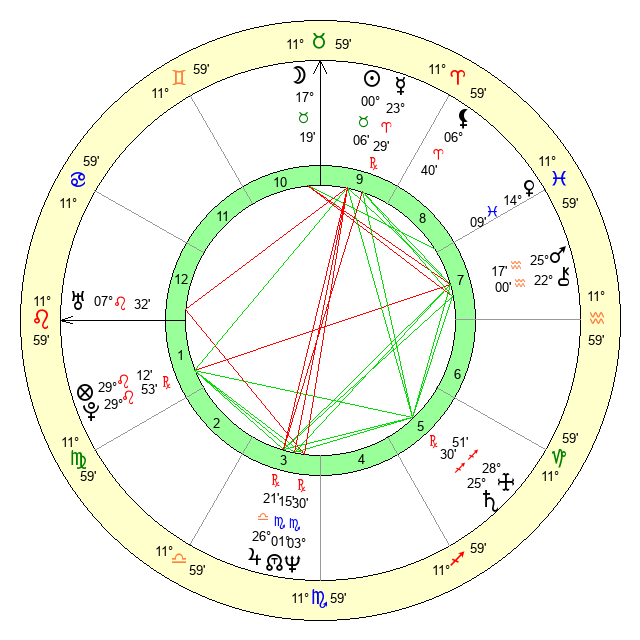 | Moon | 17 Taurus 23 | 26 Capricorn 25 | 5 Scorpio 3 |
