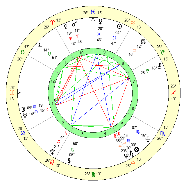 | Saturn | 27 Libra 32 | 19 Pisces 58 | 22 Libra 53 |