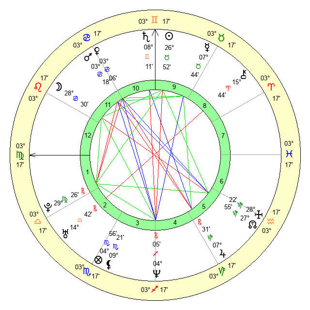 | Pluto | 29 Virgo 26 | 3 Aquarius 46 | 29 Virgo 33 |