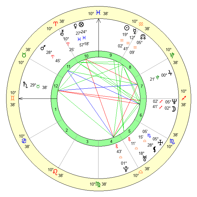 | Saturn | 29 Taurus 55 | 18 Pisces 13 | 3 Gemini 6 |