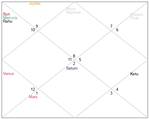 | Rahu | 4 Aquarius 34 | 29 Pisces 26 | 1 Aquarius 46 |