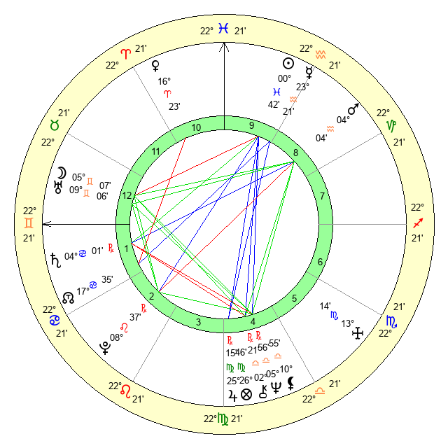 | Mercury | 23 Aquarius 22 | 9 Pisces 38 | 23 Aries 38 |