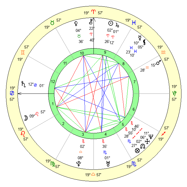 | Moon | 10 Leo 9 | 17 Capricorn 33 | 8 Gemini 26 |