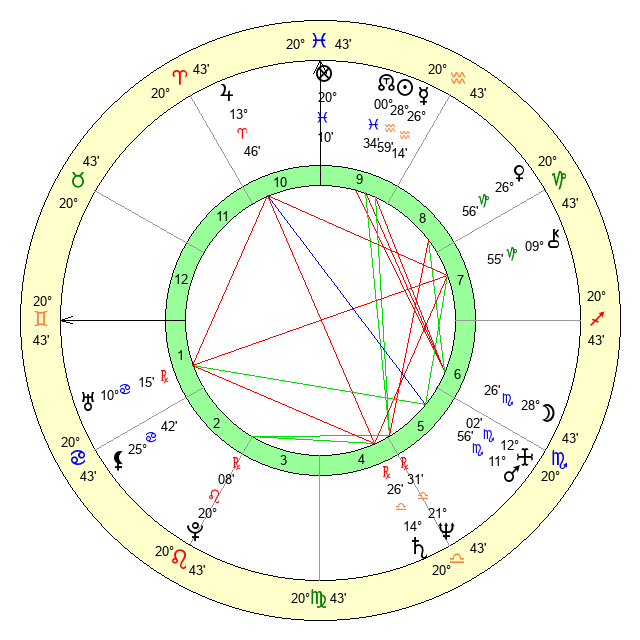 | Moon | 28 Scorpio 27 | 8 Scorpio 3 | 6 Leo 14 |
