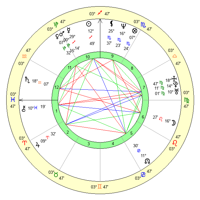 | Moon | 16 Leo 22 | 24 Gemini 18 | 17 Scorpio 51 |