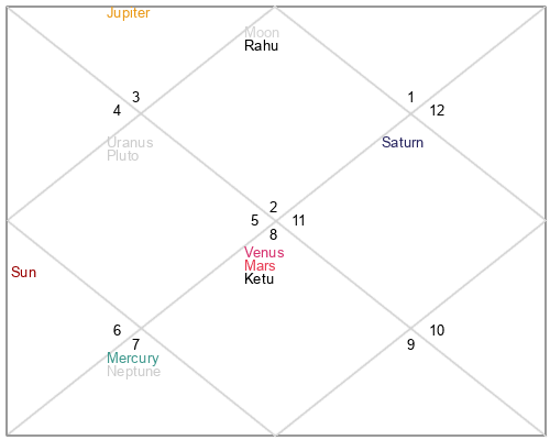 | Rahu | 6 Gemini 48 | 16 Pisces 19 | 3 Gemini 37 |