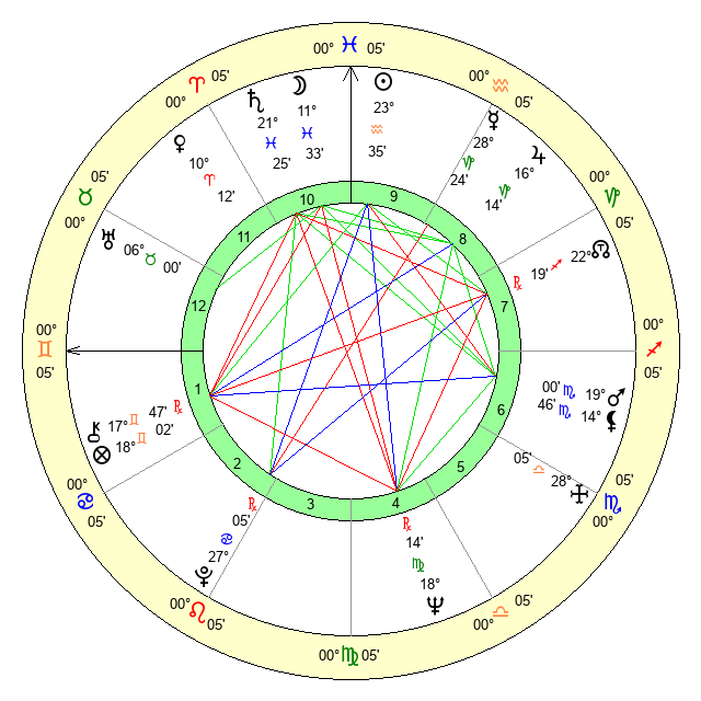 | Moon | 11 Pisces 31 | 25 Leo 38 | 6 Gemini 57 |