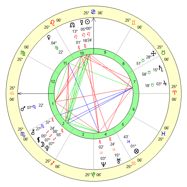 | Moon | 7 Sagittarius 4 | 16 Cancer 48 | 21 Scorpio 27 |