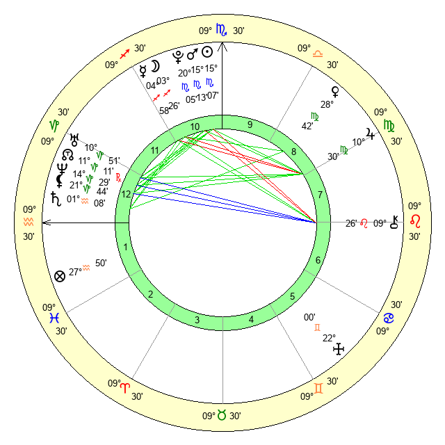 | Venus | 28 Virgo 42 | 25 Sagittarius 33 | 5 Scorpio 30 |
