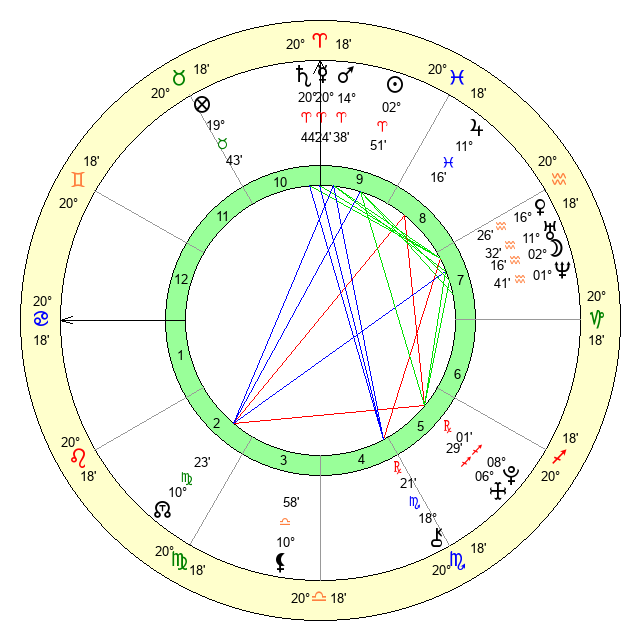 | Mars | 14 Aries 38 | 21 Cancer 7 | 4 Taurus 58 |