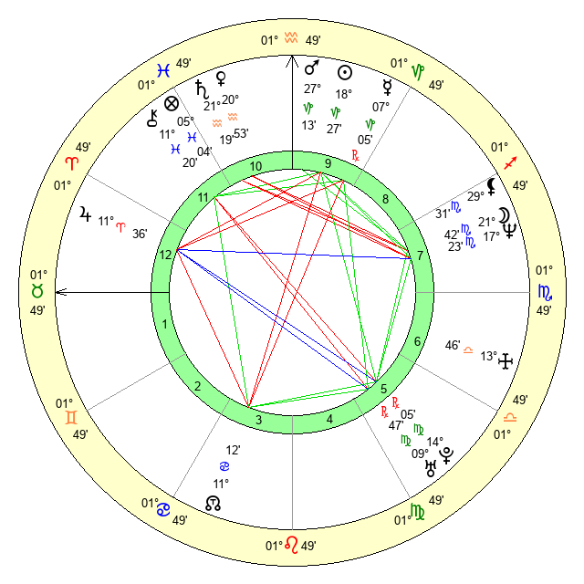 | Uranus | 9 Virgo 51 | 23 Taurus 28 | 7 Virgo 33 |