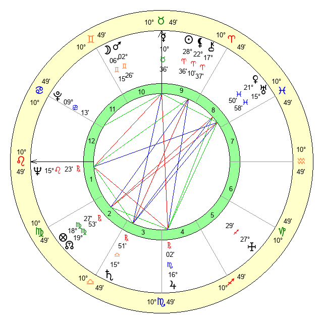 | Sun | 28 Aries 36 | 29 Aries 53 | 6 Leo 29 |