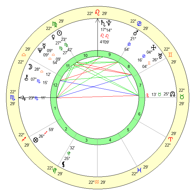 | Neptune | 9 Libra 55 | 0 Aries 54 | 12 Libra 31 |