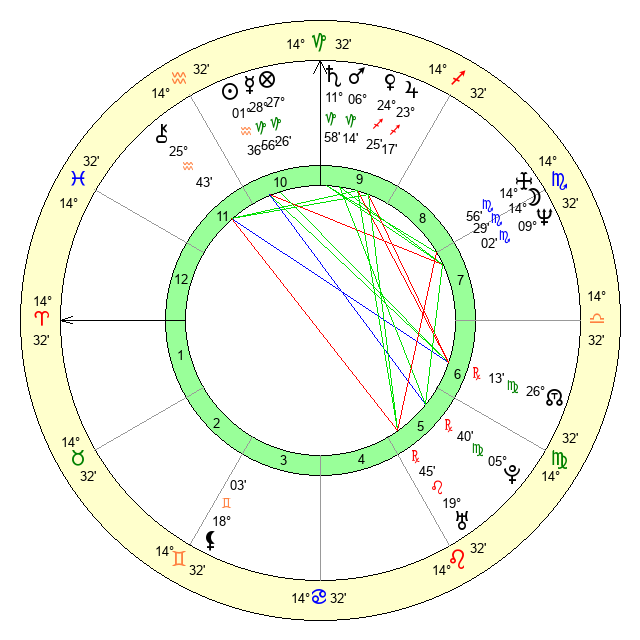 | Moon | 14 Scorpio 35 | 11 Scorpio 2 | 10 Aries 32 |