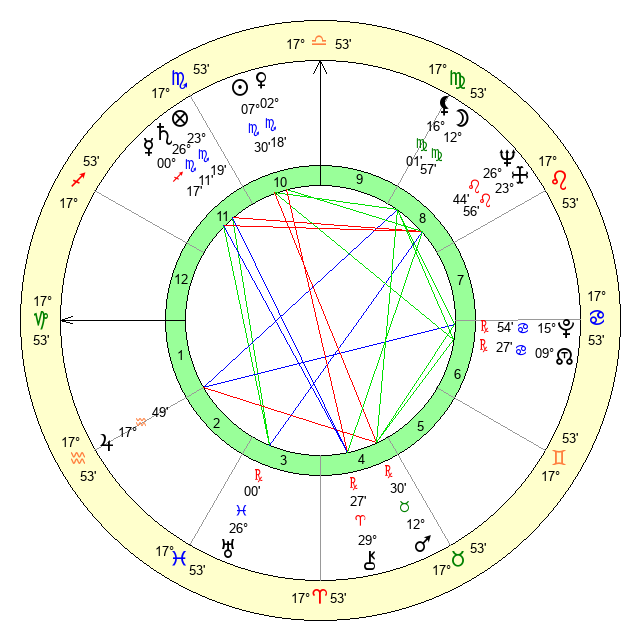 | Moon | 12 Virgo 58 | 2 Pisces 57 | 1 Taurus 13 |
