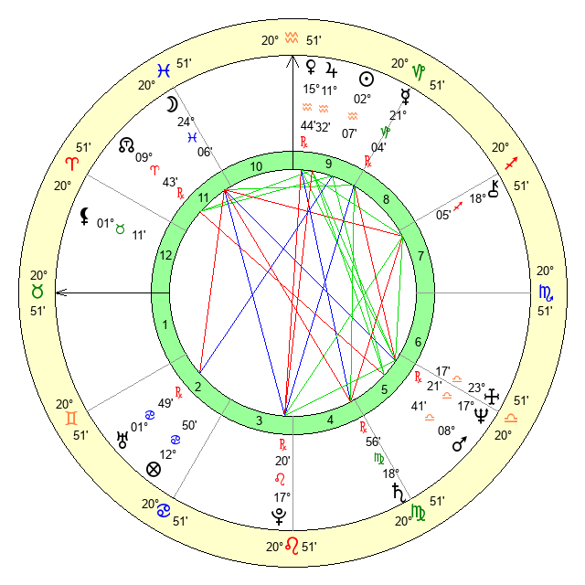 | Saturn | 19 Virgo 28 | 16 Pisces 23 | 14 Virgo 19 |